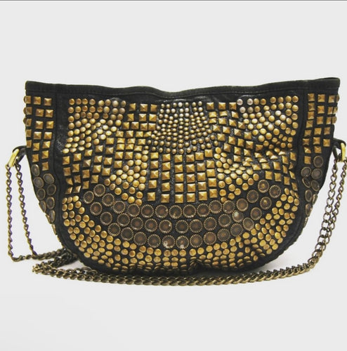 Magali Pascal Studded Black Leather Bag — Antique Gold Hardware - Designer Consignment
