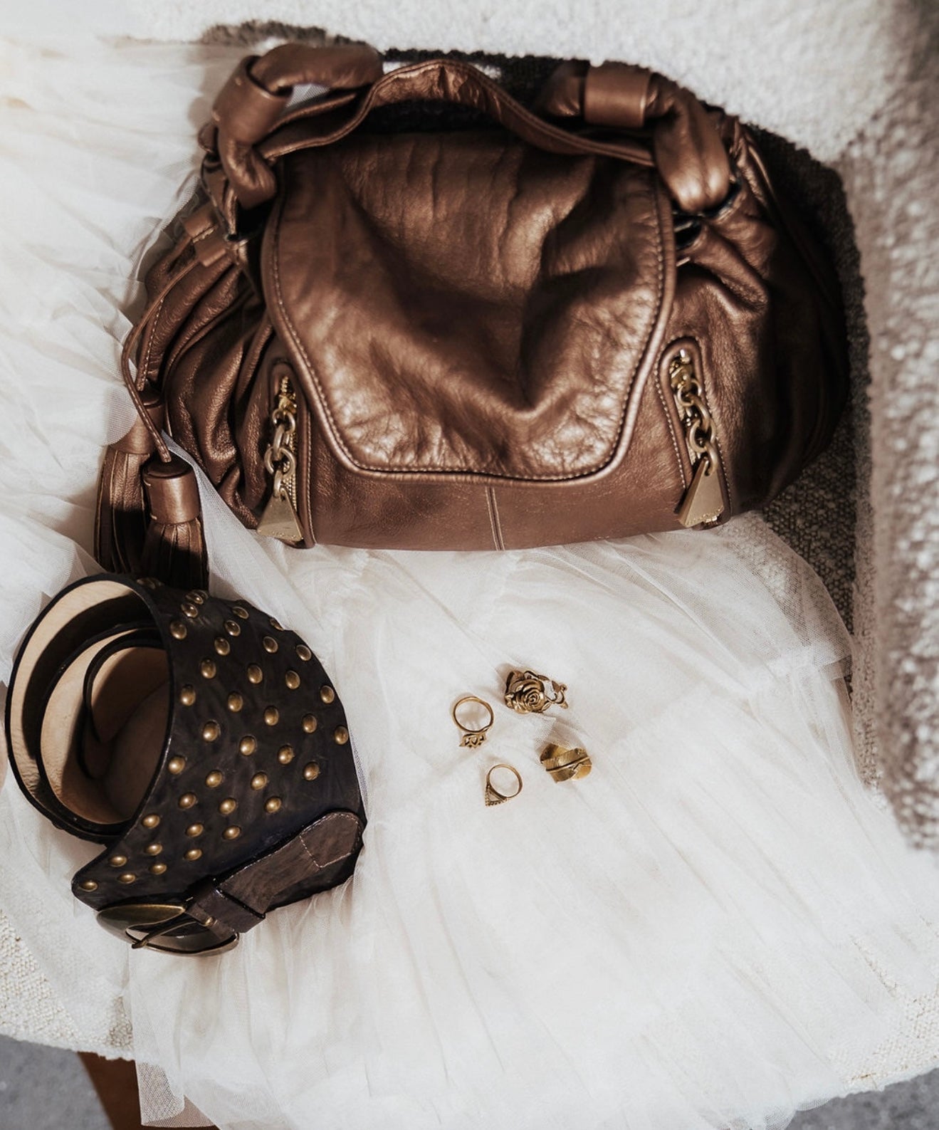 • Details: Studded embellishments, Gond hardware